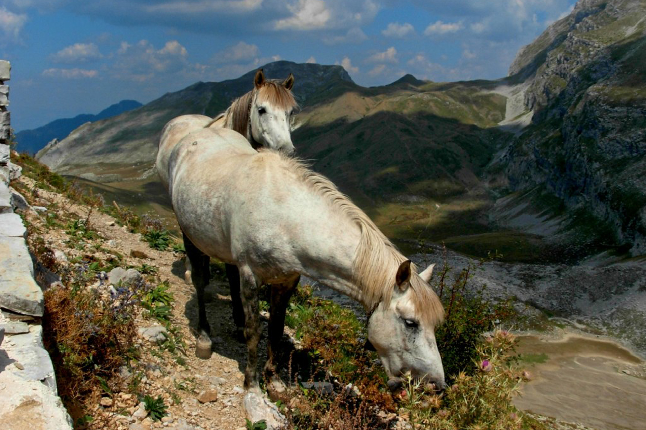 Eine Rundtour oberhalb von Litochoro durch Olivenhaine, Walnussbäume und Hochwiesen, auf denen Wildpferde grasen. Im späten September leuchten die Hänge in den scharlachroten Beeren des Kornelkirschbaums und dem Gold der sich verfärbenden Kastanienblätter. Am Nachmittag öffnet unser Reiseleiter die Türen seines eigenen Biofeldes an den unteren Hängen des Olymp. Wir ernten gemeinsam, und während der Berg das letzte Tageslicht einfängt, bereiten wir gemeinsam das Abendessen im Freien zu.